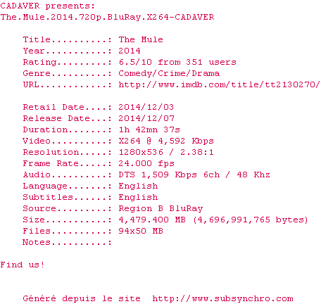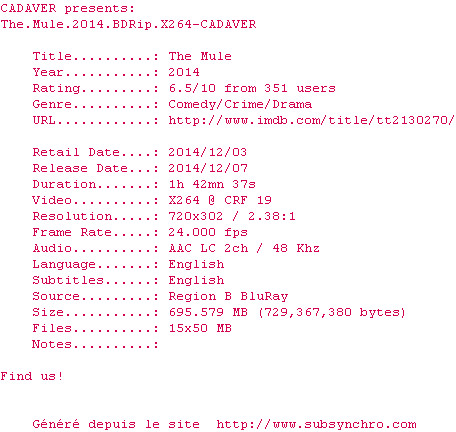 Le commentaire de stanislas94 Commente par stanislas94 (34), Le Mercredi 13 Janvier 2016 à 13h39 Un film sympa sans grande prétention avec de bons acteurs. L'acteur principal joue bien le rôle du type un peu benêt, qui se laisse embarquer dans une histoire qui le dépasse totalement. On passe un bon moment et on se prend de sympathie pour cet anti-héros. 6.5 / 10 0 0