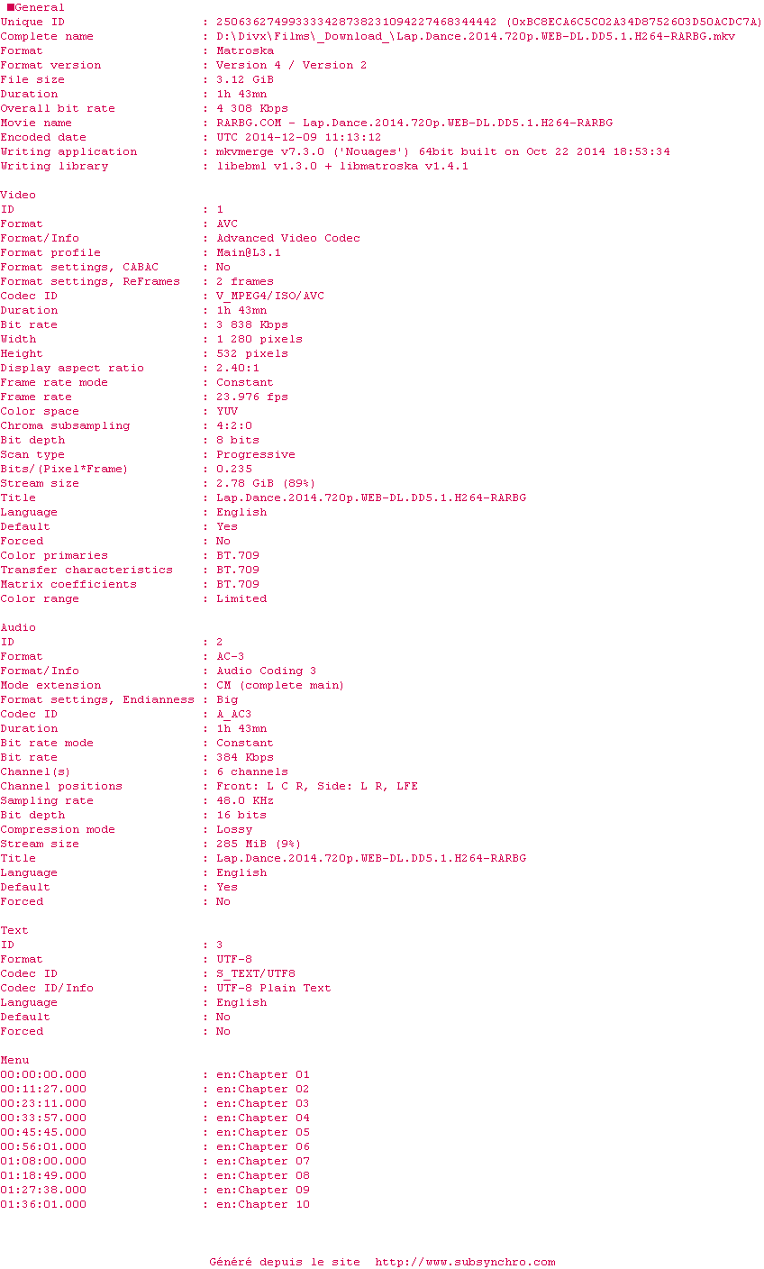 Voir le nfo de la release Lap.Dance.2014.720p.WEB-DL.DD5.1.H264-RARBG