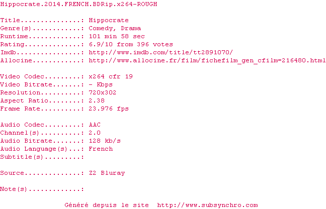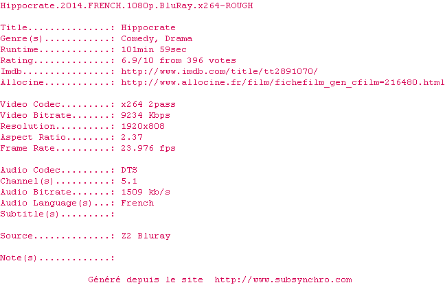Voir le nfo de la release Hippocrate.2014.FRENCH.1080p.BluRay.x264-ROUGH