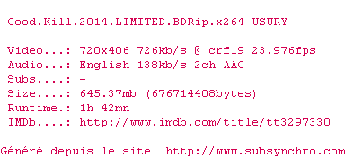 Le commentaire de Nuclear Commente par Nuclear (397), Le Mercredi 26 Aout 2015 à 18h28 Finalement bien peu critique envers la politique belliciste des États-Unis, ce "Good Kill" est un mélo boiteux qui ne s'extirpe jamais des clichés. 5 / 10 Le commentaire de buzthafuzz Commente par buzthafuzz (99), Le Mercredi 02 Septembre 2015 à 11h18 On a pas dû voir le même film... Les actions perpétrées par la CIA décrites dans ce film font passer tous les terroristes de la terre pour des bisounours. Contrairement à toi, je trouve la charge contre les US assez bien torchée et très parlante. 3 0 0 1