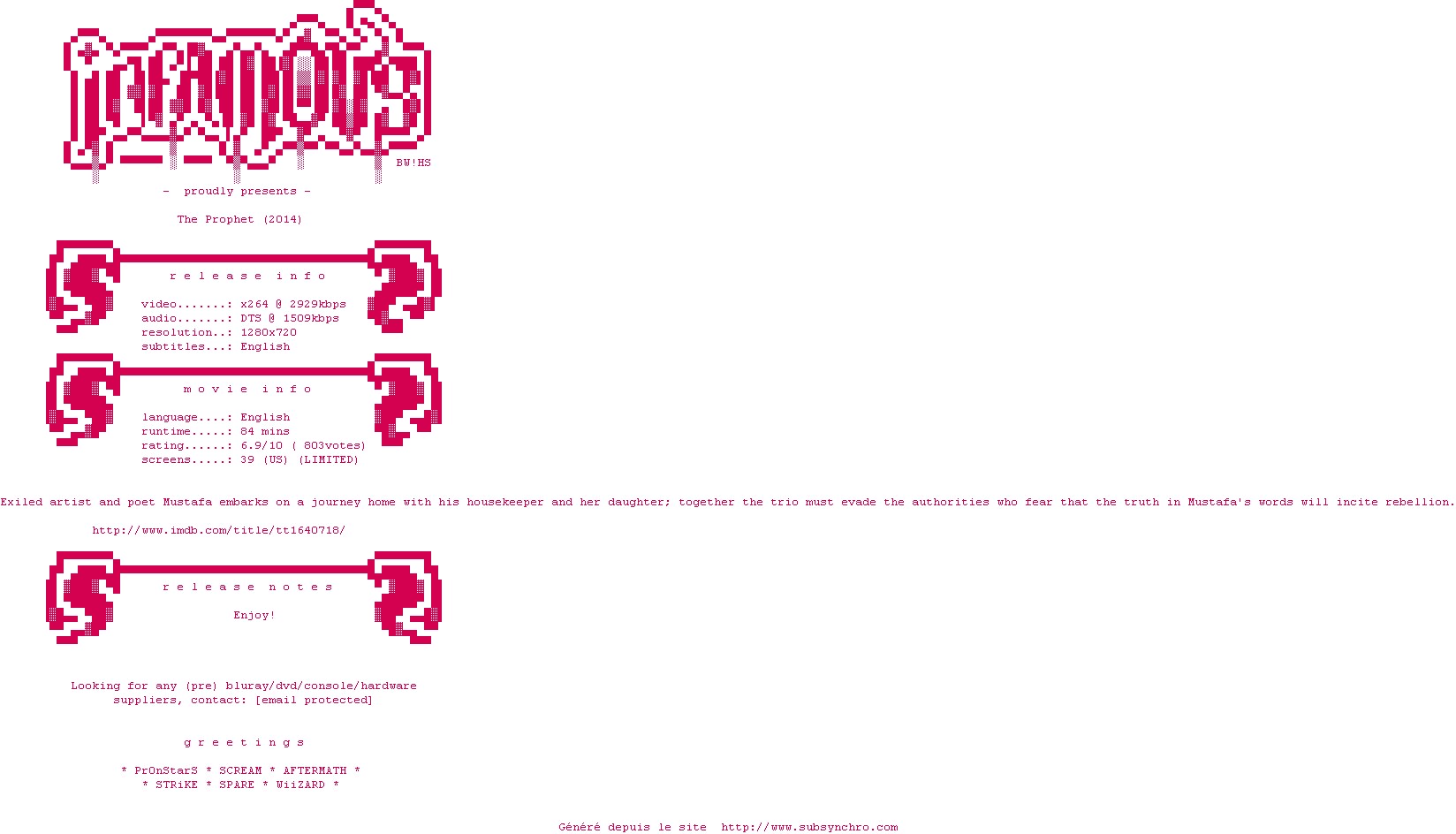 Voir le nfo de la release The.Prophet.2014.LIMITED.1080p.BluRay.x264-iNFAMOUS