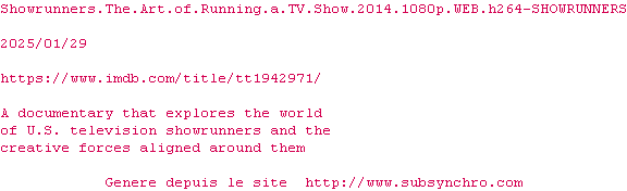 Voir le nfo de la release Showrunners.The.Art.Of.Running.A.TV.Show.2014.1080p.WEB.H264-SHOWRUNNERS