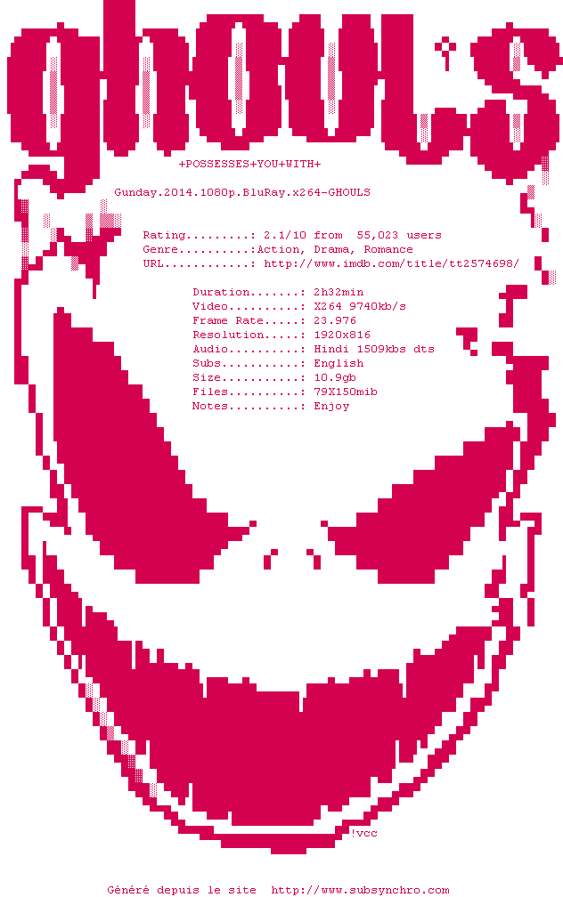 Voir le nfo de la release Gunday.2014.1080p.BluRay.x264-GHOULS