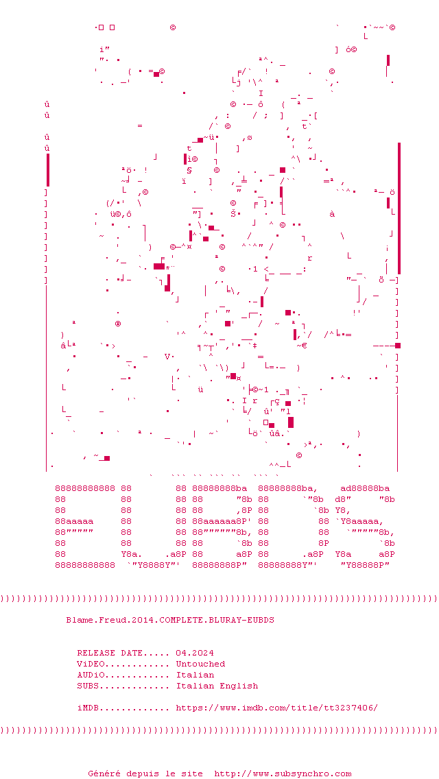 | Voir le nfo de la release Blame.Freud.2014.COMPLETE.BLURAY-EUBDS | EUBDS | Blame.Freud.2014.COMPLETE.BLURAY-EUBDS OpenSubtitles | 0 fichier | ||
