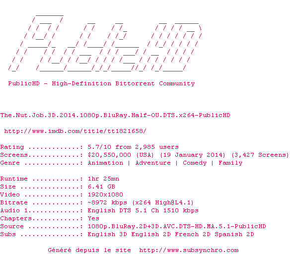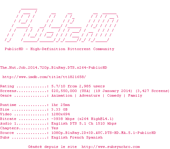Le commentaire de Nuclear Commente par Nuclear (397), Le Dimanche 20 Avril 2014 à 18h09 En multipliant les coups de théâtre et en privilégiant le récit à la comédie, le film s'avère finalement peu amusant et écartera certainement les plus jeunes. 6 / 10 1 1