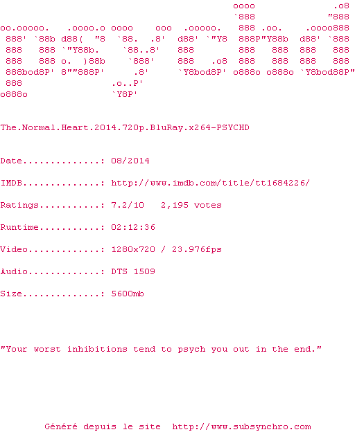 Voir le nfo de la release The.Normal.Heart.2014.720p.BluRay.x264-PSYCHD