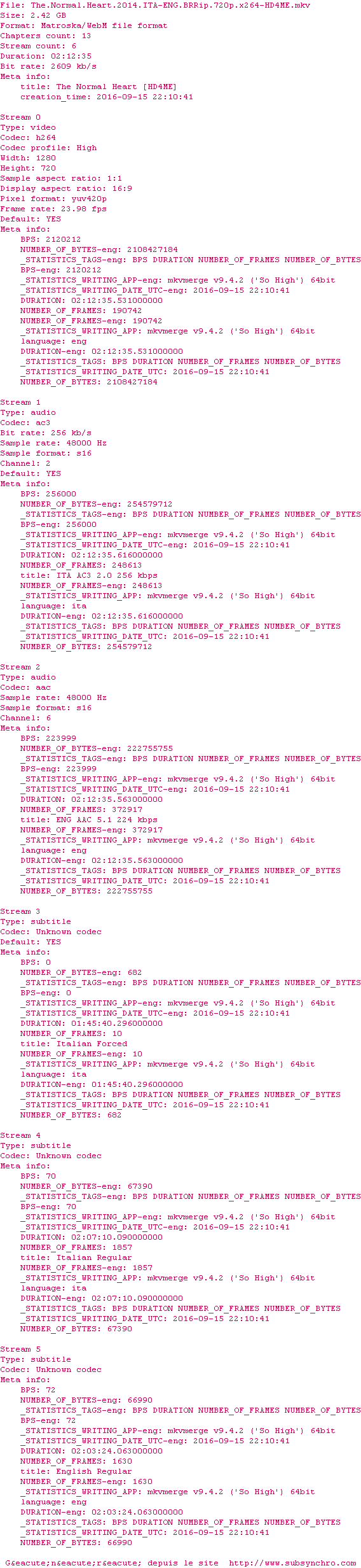 Voir le nfo de la release The.Normal.Heart.2014.ITA-ENG.BRRip.720p.x264-HD4ME