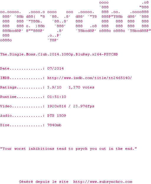 Voir le nfo de la release The.Single.Moms.Club.2014.BDRip.x264-PSYCHD