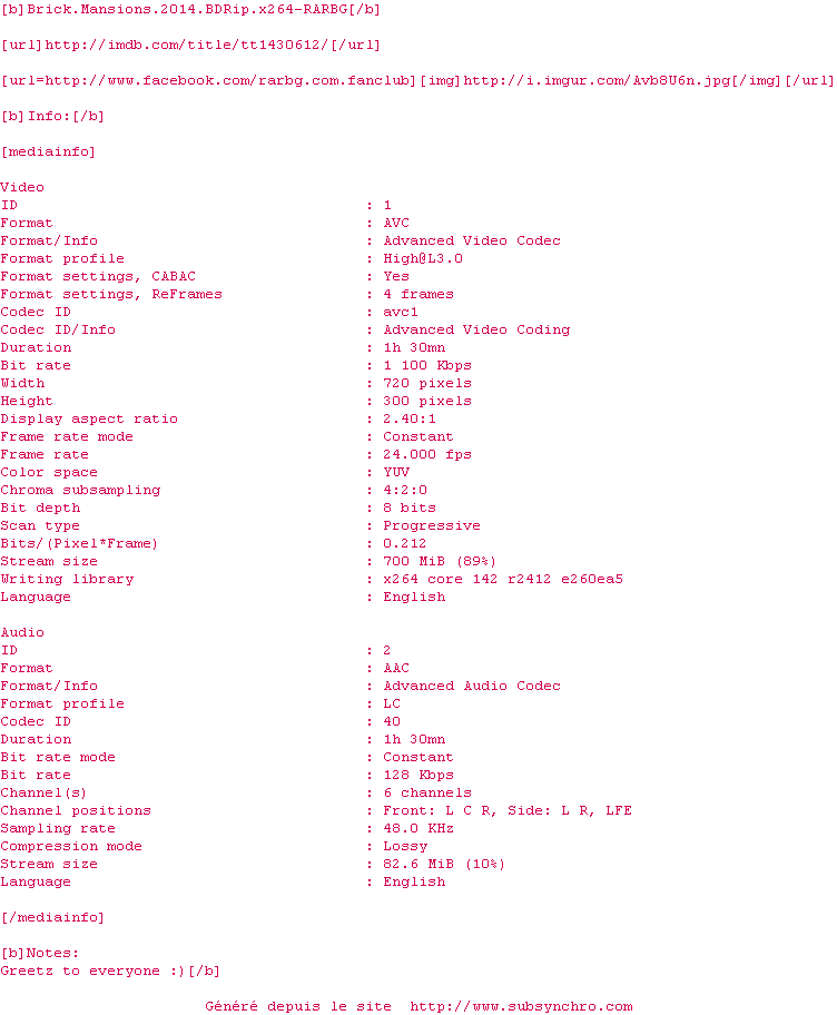 Le commentaire de oleo Commente par oleo (23), Le Vendredi 22 Aout 2014 à 18h49 Franchement...c'est mauvais, mal joué, insipide et pour une fois la version made in france d'origine surclasse ce film. mais que vient faire Paul Walker dans une telle galère... c'est au nivau d'un téléfilm en Direct-to-Video 3 / 10 1 0