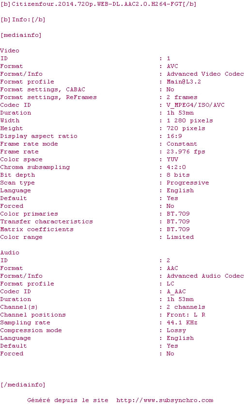 Fonctionne parfaitement également avec la release : Citizenfour.2014.1080p.HDTV.x264-BATV