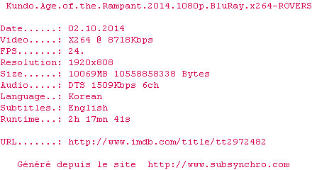 Telechargez le RSS « Fichier de la release Kundo.Age.Of.The.Rampant.2014.1080p.BluRay.x264-ROVERS »