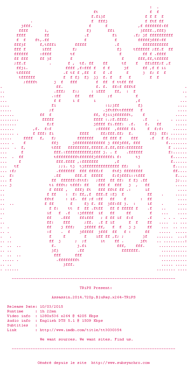 Voir le nfo de la release Assassin.2014.720p.BluRay.x264-TRiPS