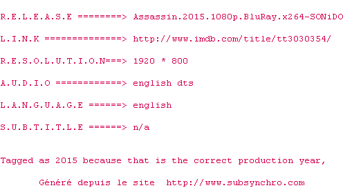 Voir le nfo de la release Assassin.2015.1080p.BluRay.x264-SONiDO