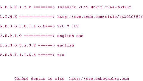 Voir le nfo de la release Assassin.2015.BDRip.x264-SONiDO