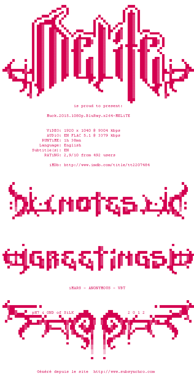 Voir le nfo de la release Muck.2015.1080p.BluRay.x264-MELiTE