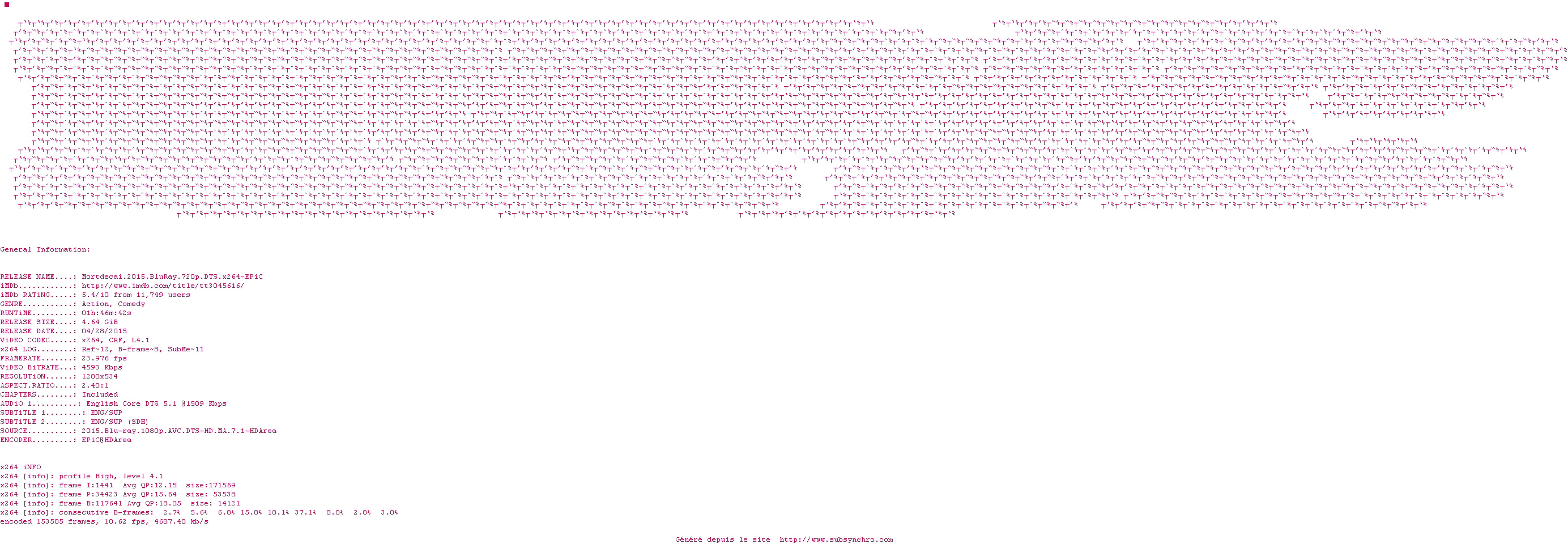 Voir le nfo de la release Mortdecai.2015.BluRay.720p.DTS.x264-EPiC