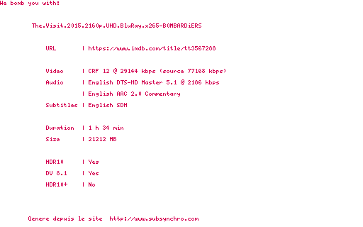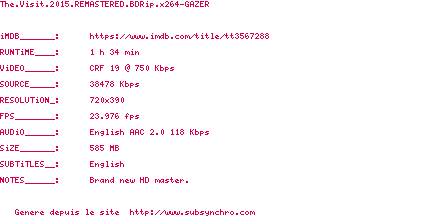 Le commentaire de Ballbreaker33 Commente par Ballbreaker33 (1), Le Mercredi 23 Decembre 2015 à 21h02 Ce week- end j'ai visionné Paranormal Activity 5, Sinister 2 et The Visit, c'est pour moi celui-ci le plus flipper, et de loin...! 7 / 10 0 0