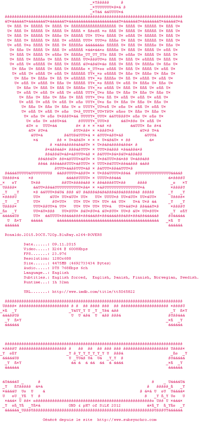 | ROVERS | Ronaldo.2015.DOCU.BDRip.x264-ROVERS OpenSubtitles | 0 fichier | |||