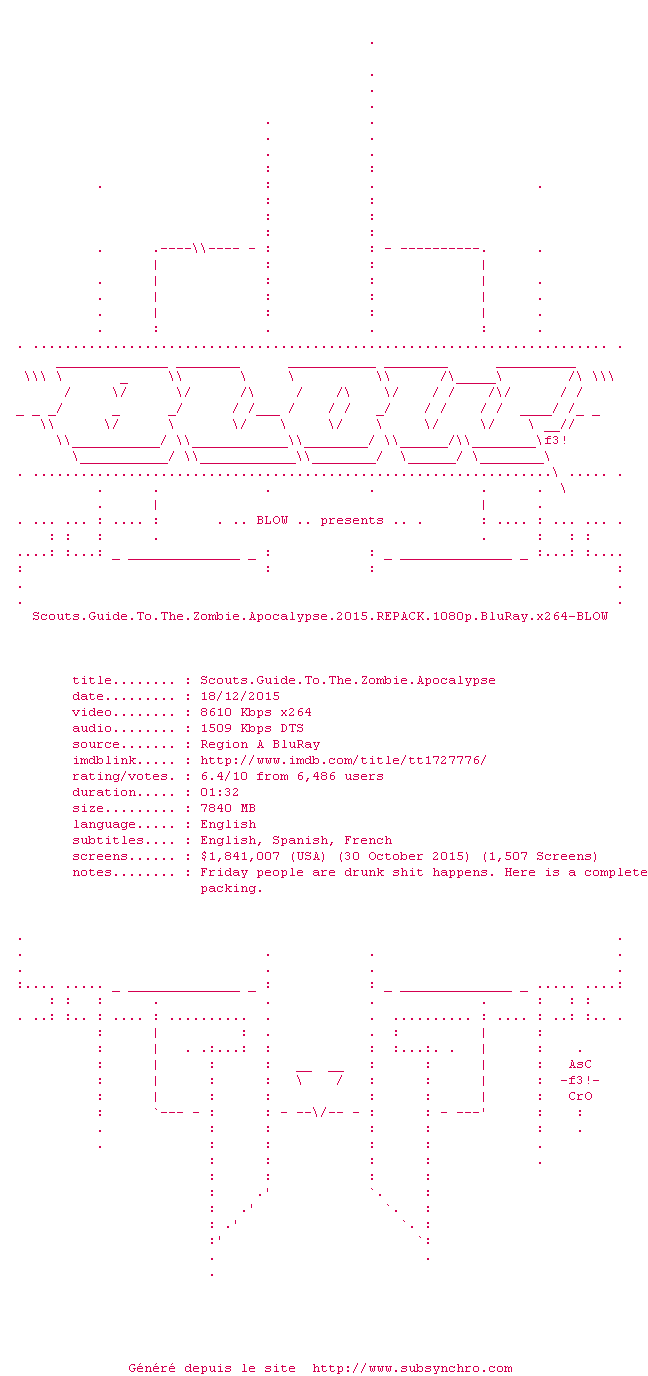 Le commentaire de Mic7313 Commente par Mic7313 (39), Le Mardi 29 Mars 2016 à 12h18 Grosse rigolage que ce film mais dans le bon sens du terme..Je me suis bien marré, franchement je le conseil pour le 2ième degré évidemment !! 7 / 10 0 0