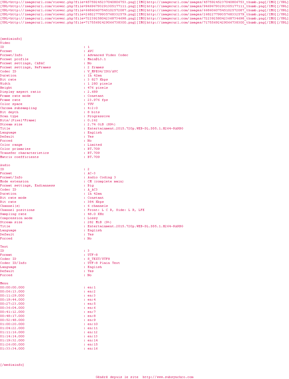 | GECKOS | Entertainment.2015.LIMITED.1080p.BluRay.x264-GECKOS OpenSubtitles | 0 fichier | |||