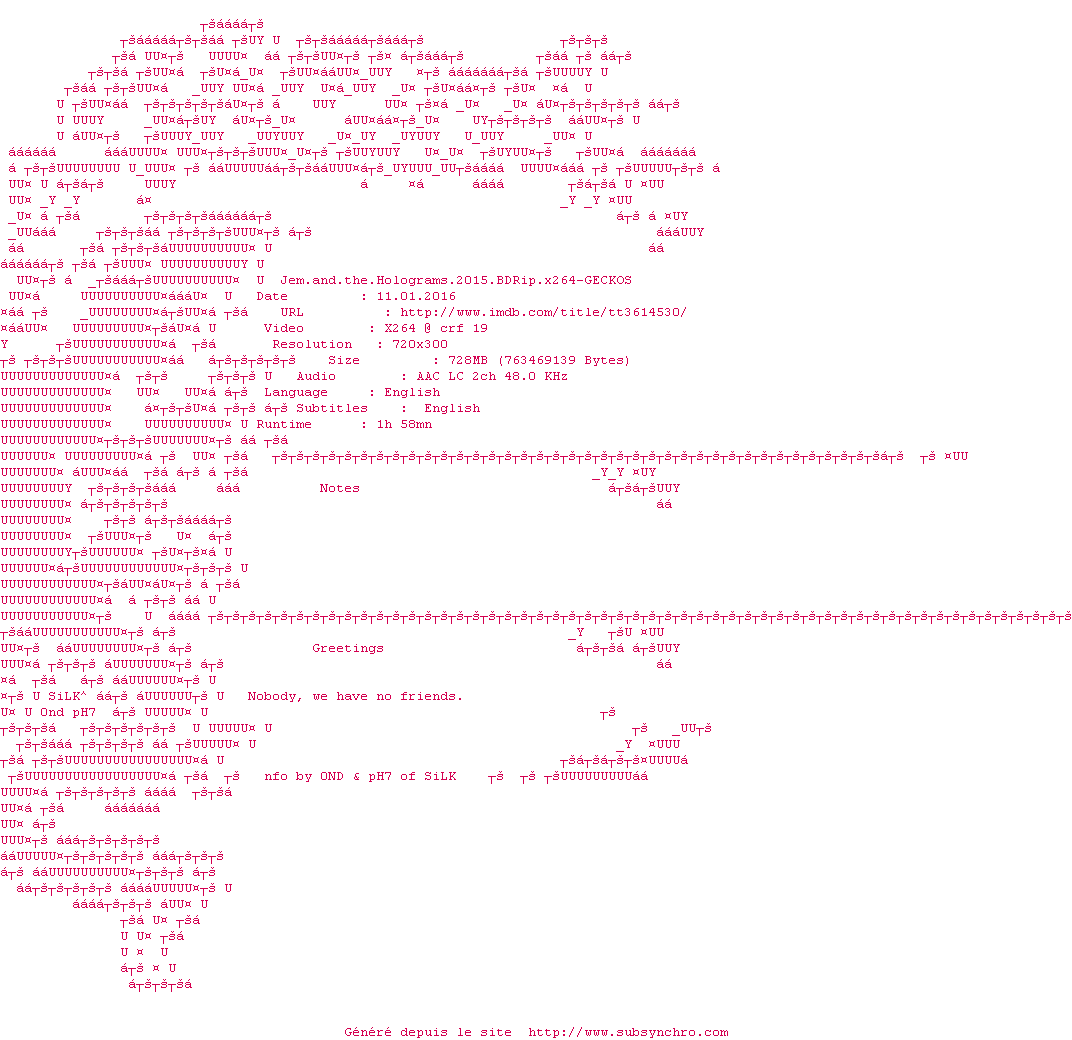 Voir le nfo de la release Jem.And.The.Holograms.2015.720p.BluRay.x264-GECKOS