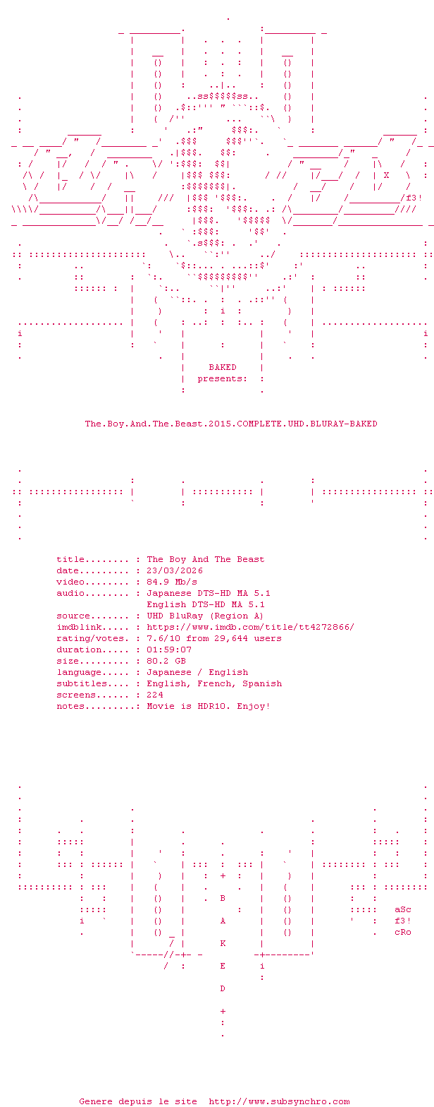 La release The.Boy.And.The.Beast.2015.COMPLETE.UHD.BLURAY-BAKED est en 4K