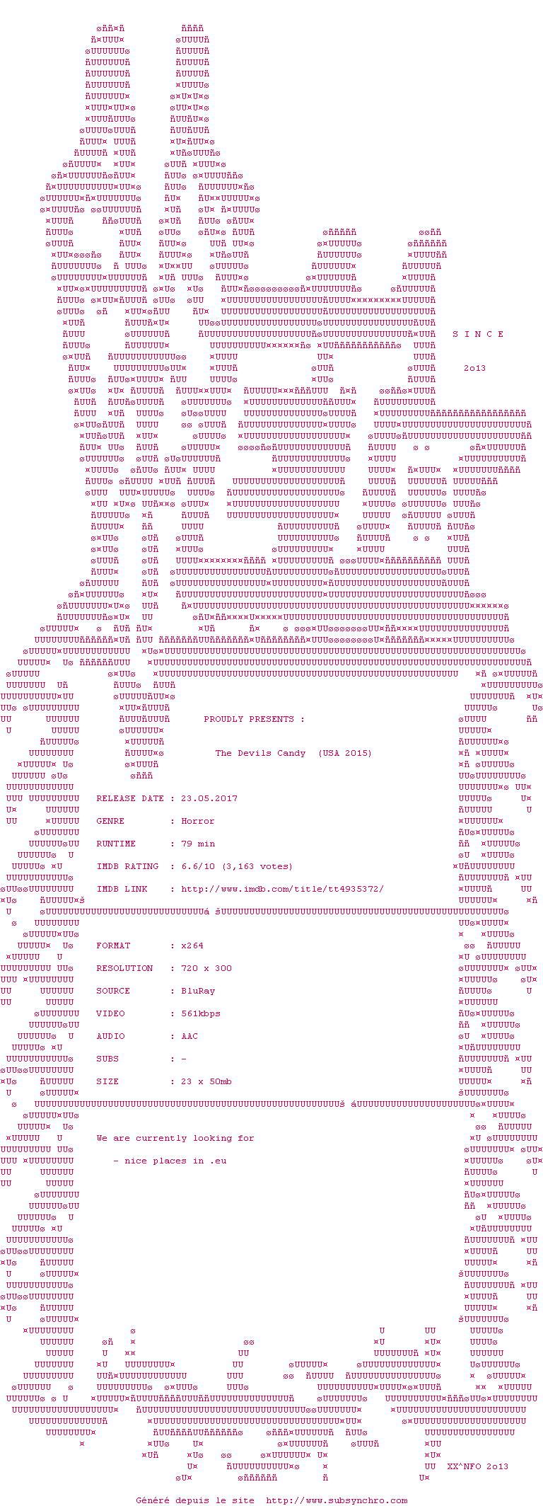 Voir le nfo de la release The.Devils.Candy.2015.720p.BluRay.x264-VETO