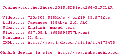 Telechargez le RSS « Fichier de la release Journey.To.The.Shore.2015.BDRip.x264-BiPOLAR »