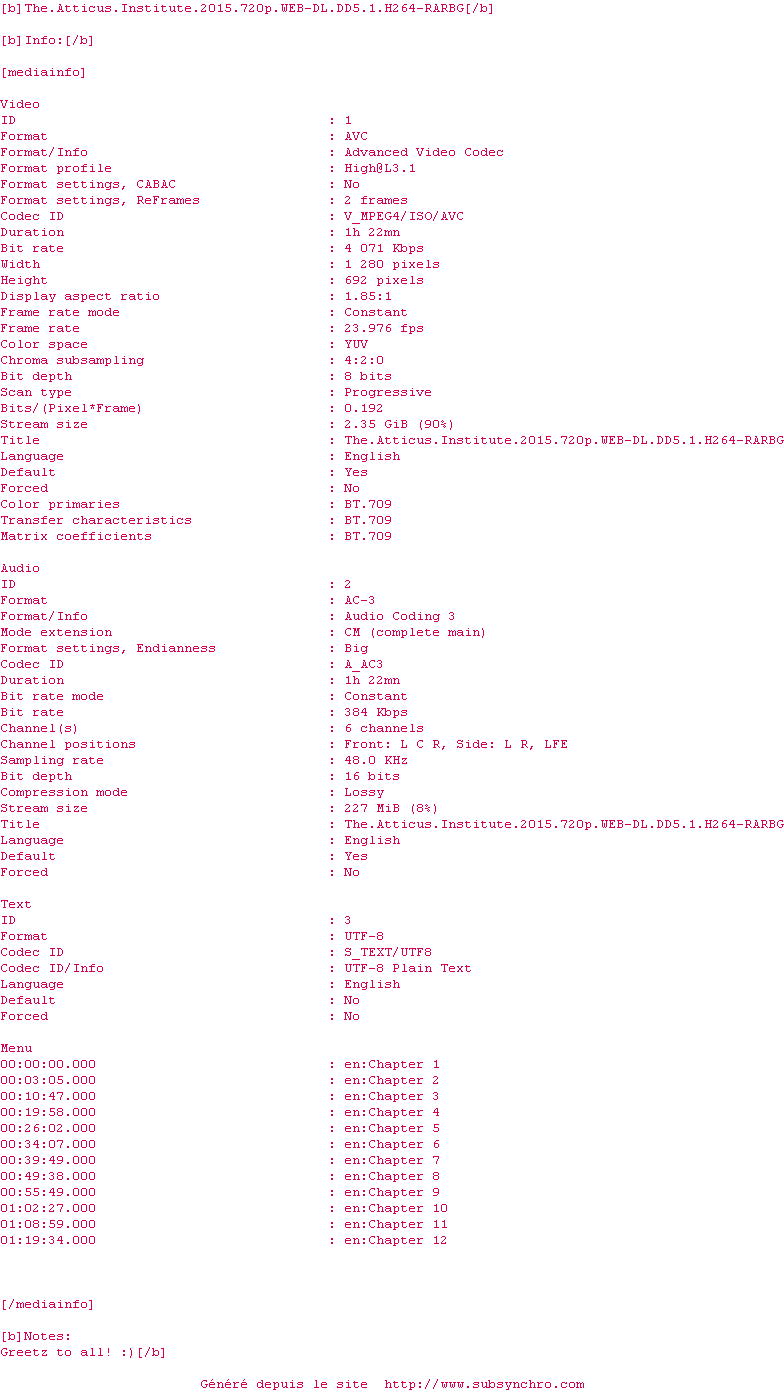 Il n'y a actuellement aucun sous-titre pour cette release. Cliquez ici pour en ajouter un.