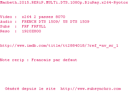 Telechargez le RSS « Fichier de la release Macbeth.2015.RERiP.MULTi.DTS.1080p.BluRay.x264-Ryotox »
