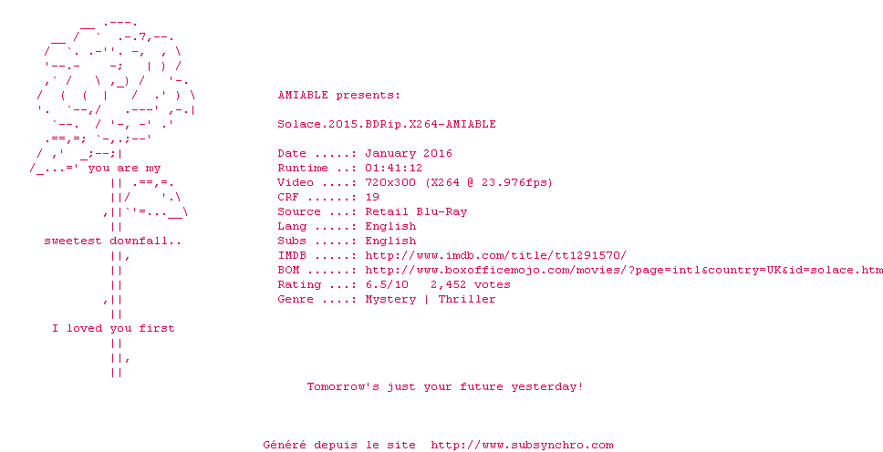 Telechargez le RSS « Fichier de la release Solace.2015.BDRip.x264-AMIABLE »