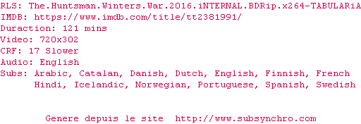 Commentez le fichier The.Huntsman.Winters.War.2016.iNTERNAL.BDRip.x264-TABULARiA.srt