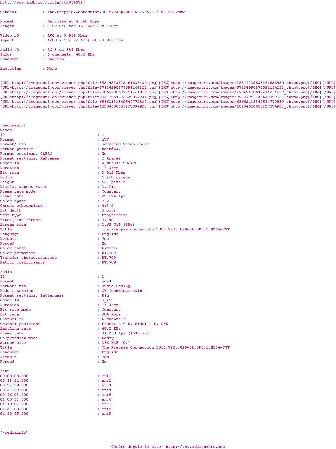 | PLAYNOW | The.Preppie.Connection.2015.720p.WEB-DL.DD5.1.H264-PLAYNOW OpenSubtitles | 0 fichier |