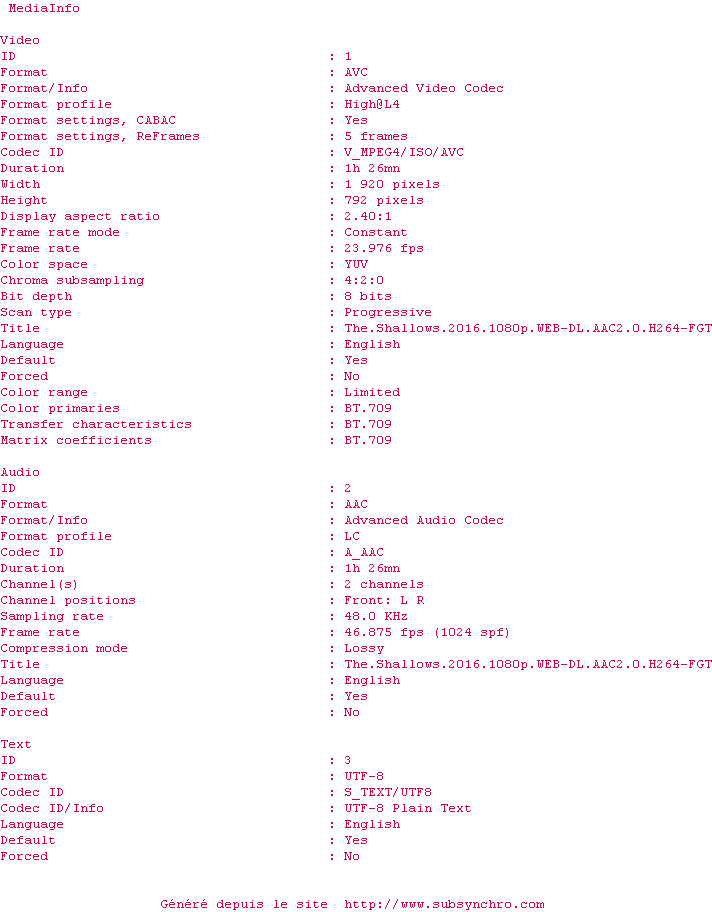 Le commentaire de Team31 Commente par Team31 (1), Le Samedi 17 Septembre 2016 à 20h50 The Shallows est un pop-corn movie à voir un samedi soir entre potes. L'interprétation est bonne, la tension assez forte durant certaines scènes mais le film n'échappe pas à la surenchère hollywoodienne (notamment à la fin). Globalement le film reste agréable, avec de très belles images... 6.5 / 10 1 0