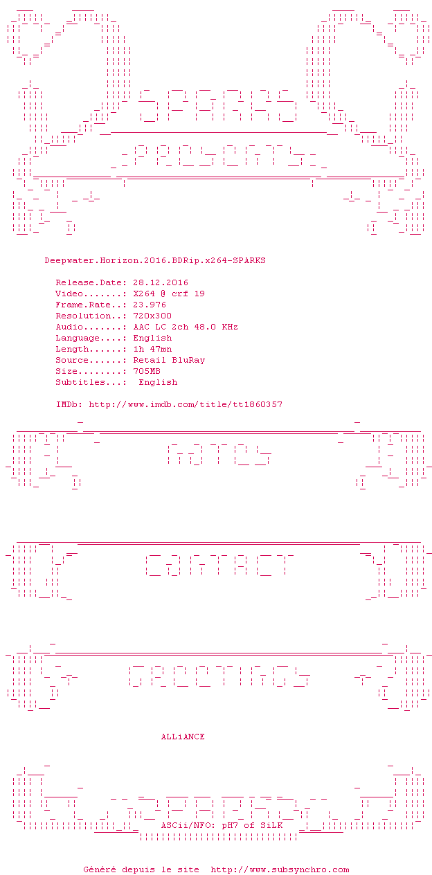 A noter un temps parfait de 1h35, pas besoin de plus, et un bel hommage en fin de film aux vraies personnes décédées dans l'explosion en 2010.