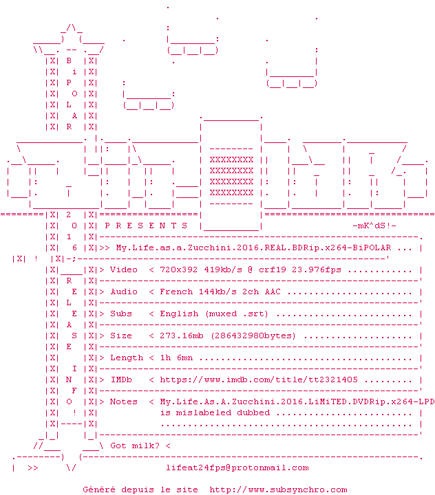 Voir le nfo de la release My.Life.As.A.Zucchini.2016.REAL.BDRip.x264-BiPOLAR