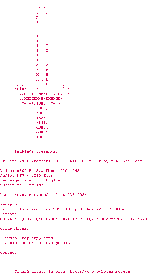 Voir le nfo de la release My.Life.As.A.Zucchini.2016.RERIP.720p.BluRay.x264-RedBlade
