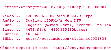 Voir le nfo de la release Perfect.Strangers.2016.1080p.BluRay.x264-USURY