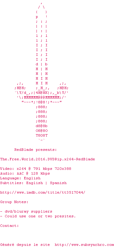 | FGT | The.Free.World.2016.720p.WEB-DL.XviD.AC3-FGT OpenSubtitles | 0 fichier | |||