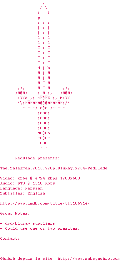 Voir le nfo de la release The.Salesman.2016.720p.BluRay.x264-RedBlade