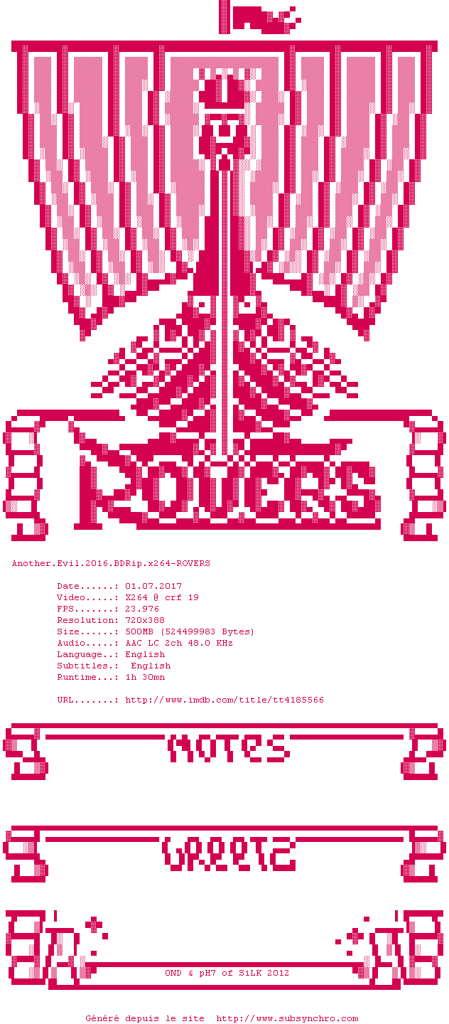 Voir le nfo de la release Another.Evil.2016.BDRip.x264-ROVERS