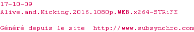Telechargez le RSS « Fichier de la release Alive.And.Kicking.2016.1080p.WEB.x264-STRiFE »