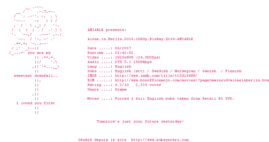 Telechargez le RSS « Fichier de la release Alone.In.Berlin.2016.1080p.BluRay.x264-AMIABLE »