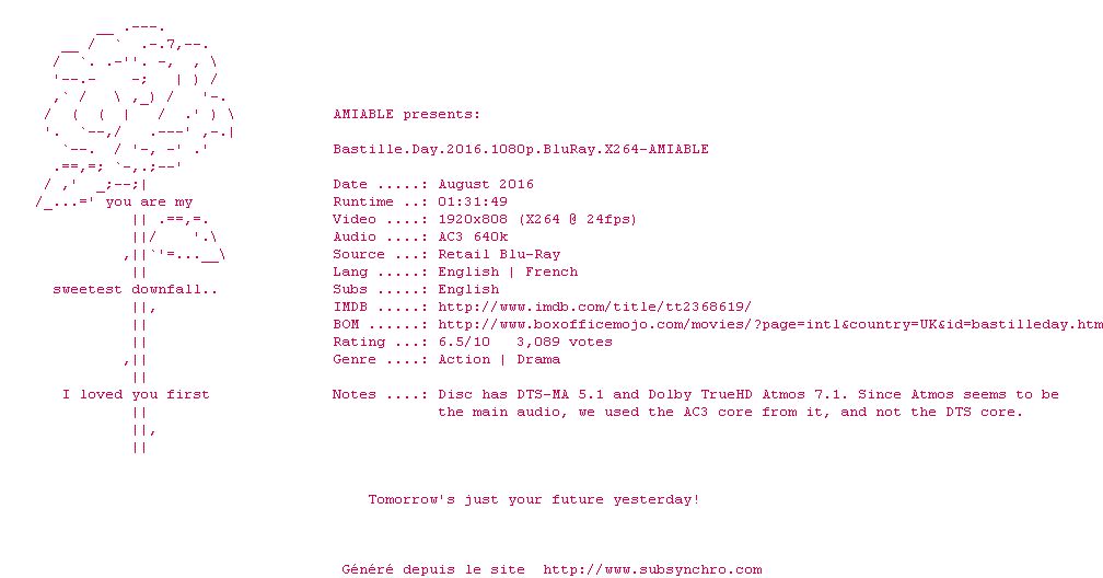 J'ai pas entendu parlé de ce film pleins d'acteurs francais ! En attendant une version sans ST FORCED pour les passages en francais.
