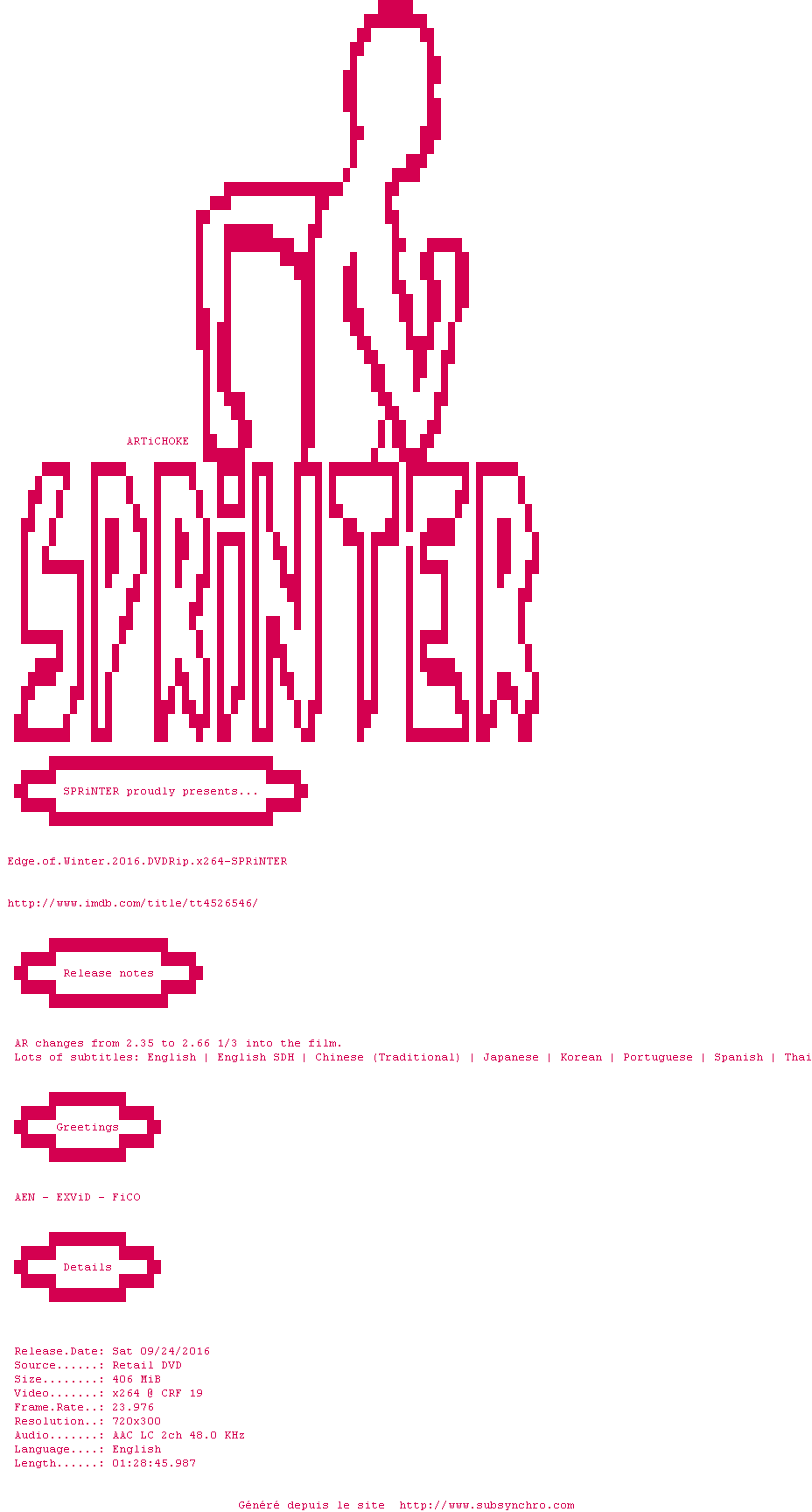 Telechargez le RSS « Fichier de la release Edge.Of.Winter.2016.DVDRip.x264-SPRiNTER »