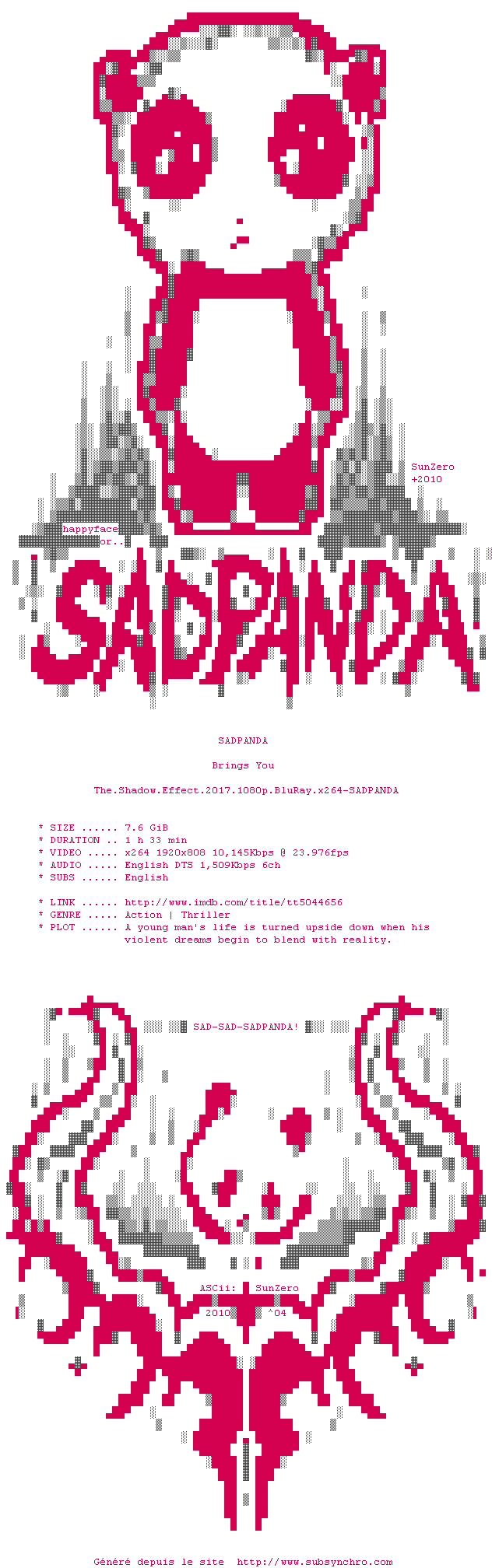 Voir le nfo de la release The.Shadow.Effect.2017.1080p.BluRay.x264-SADPANDA