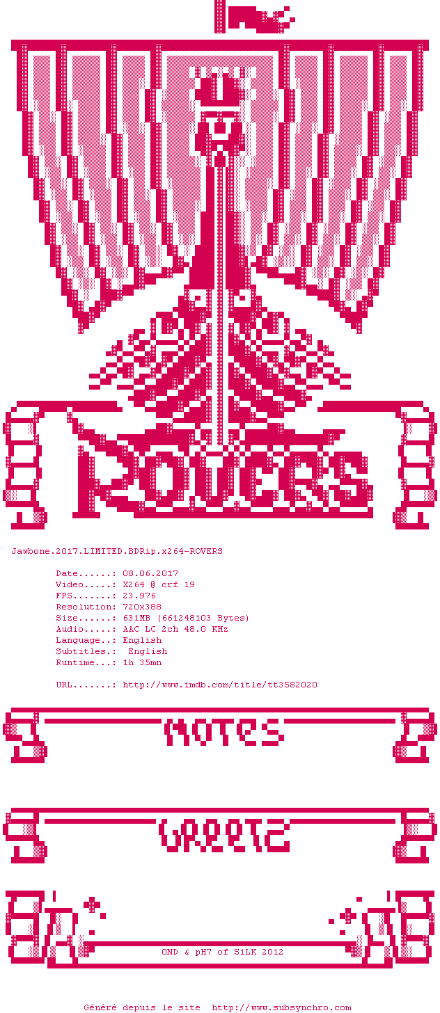 Voir le nfo de la release Jawbone.2017.LIMITED.1080p.BluRay.x264-ROVERS