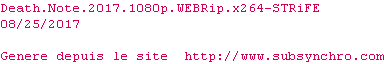 | EVO | Death.Note.2017.HDRip.XviD.AC3-EVO OpenSubtitles | 07/03/2026 | 1 fichier | ||