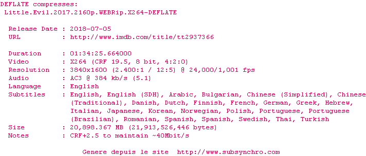 Le commentaire de oleo Commente par oleo (47), Le Lundi 04 Septembre 2017 à 10h24 C'est gentil, ça ne casse pas 3 pattes à un canard mais il manque une bonne grosse dose de délire pour en faire une bonne comédie horrifique - mon fils de 15 ans était un peu flipper, anticipant des screamers mais rien à l'horizon finalement.... c'est presque tout publique 5 / 10 0 0