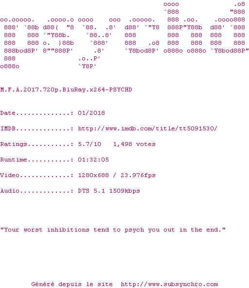 Voir le nfo de la release M.F.A.2017.720p.BluRay.x264-PSYCHD